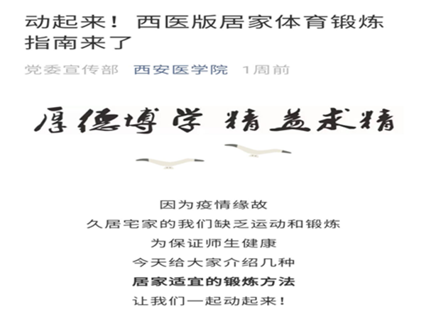 根据陕西省教育系统新型冠状病毒感染的肺炎疫情防控工作领导小组颁发的《关于做好疫情防控期间高等学校教学工作的通知》(陕教疫控组发[2020] 15号)、《williamhill官网防疫期间线上教学质量监控指导意见》等文件精神,贯彻落实疫情防控期间“延期不延教、停课不停学”工作要求,切实保障本科教学质量,威廉希尔体育认真部署,广泛动员,认真准备,科学制定“防疫抗疫”体育课的教学方案,保证2019-2020学年第二学期体育课程线上教学有序、规范、保质进行。
