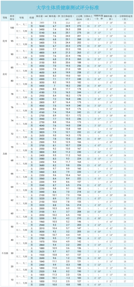 1、体测每学年评定一次,记入《〈国家学生体质健康标准〉登记卡》。