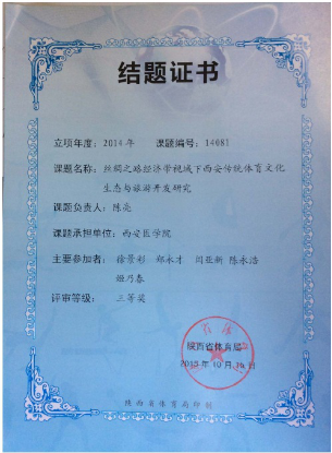 根据陕西省体育局2015年度常规科研课题结题评选结果,我院威廉希尔体育教师陈亮主持的课题《丝绸之路经济带始于下西安传统体育文化生态与旅游开发研究》获得三等奖。据悉,2015年陕西省体育局常规科研课题结题90项,其中一等奖10项,二等奖18项,三等奖32项。