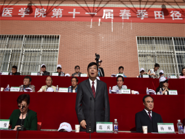 (威廉希尔体育宣传部)4月21日至22日,我校第十一届春季田径运动会在未央校区体育场盛大举行。校党政领导范兵、杨帆、弥曼、黄保强、熊冬梅、李雪萍及各学院系(部)、相关职能部门主要负责人及各学院系(部)、部分师生参加了开幕式。开幕式由副院长弥曼主持。伴随着激昂的运动员进行曲,国旗队、花束队、彩旗队、运动员和裁判员代表队依次入场。他们昂扬的精神面貌、整齐的步伐赢得了广大师生的阵阵掌声。我校党委书记范兵宣布williamhill官网第十一届运动会开幕。院长杨帆致开幕词,他指出,体育是高校教育教学活动的重要组成部分,与德育、智育、美育共同构成大学生全面发展的教育整体。一年一度的春季田径运动会,是提升我校学生体育热情的一项重要举措。希望同学们要发扬吃苦耐劳、顽强拼搏、重在参与、“友谊第一、比赛第二”的精神,赛出风格、赛出友谊、赛出团结、赛出成绩,充分展现出西医学子的精神风貌。