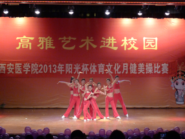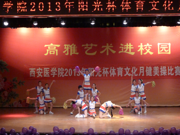 10月30日下午,williamhill官网2013年体育文化月“阳光杯”健美操比赛在学校学术报告厅隆重举行,来自各院系的9支代表队参加比赛,各院系学生和负责体育工作的老师观看了比赛。赛场上各支代表队服装统一、套路娴熟,加上队形变化和配上动感的音乐,精彩、有活力,充分展示了西医学子的青春风采,经过角逐,最终人文科学系夺得冠军,高职学院和口腔医学系分别获得亚军和季军。
