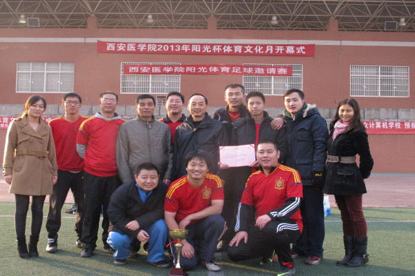 为了丰富我校教职工业余文化生活,活跃校园体育氛围,提高我校教职工身体素质,加强学校精神文明建设,推动“阳光体育运动”发展。由校工会和威廉希尔体育主办,教工足球协会承办的williamhill官网“阳光杯”体育足球邀请赛于2013年12月13日在未央校区足球场举行。经过激烈比赛,校本部代表队、一附院代表队、二附院代表队分别获得第一、二、三名。赛场上参赛队员精神饱满、顽强拼搏,观众加油声、助威声不绝于耳。现场气氛热烈、富有激情。williamhill官网工会副主席刘先锋亲临现场观看比赛,机关一分会主席董绪民、第一附属医院分会副主席张惠文、第二附属医院分会女工委员会主任杨丽娜为获奖代表队颁奖。