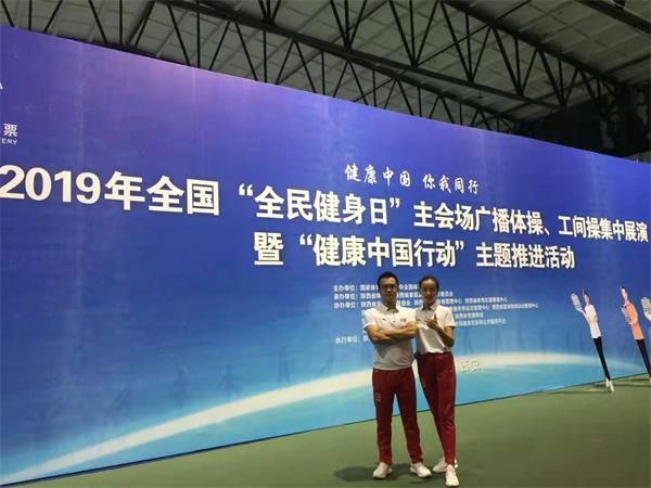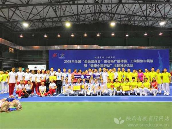 2019年8月2日至4日,由国家体育总局、中华全国体育总会主办的 2019年全国“全民健身日”主会场广播体操、工间操集中展演暨“健康中国行动”主题推进活动在西安举行。陕西省委教育工委,省教育厅代表省直机关工委参加了本次活动,队员由部分高校和陕西石油普通教育管理移交中心教职工组成,陕西省委教育工委副书记陈乃霞担任领队。我校威廉希尔体育闫勇江、李珈骐两名老师在暑假期间经过三周的备赛取得一等奖和最佳团队奖。