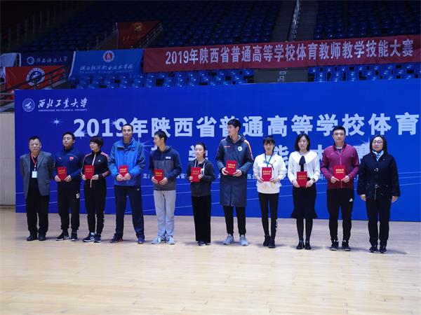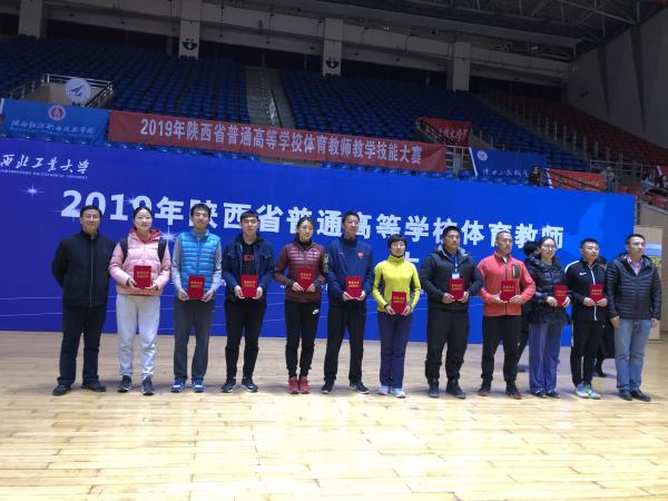 为了贯彻落实《国务院办公厅关于强化学校体育促进学生身心健康全面发展的意见》精神,进一步深化教学改革,全面提高陕西省普通高等学校教学水平,培养造就一支高素质创新型教师队伍,不断推动高校体育课程建设与竞技水平提升。由陕西省教育厅主办、西北工业大学承办的“陕西省2019年普通高等学校体育教师教学技能大赛”于2019年11月15-18日,在西北工业大学长安校区举行。经过威廉希尔体育遴选推荐,王思、张良志老师参加了本次比赛,威廉希尔体育副主任姬乃春担任领队。在为期两天的比赛中,经过教案评审、课堂教学(说课、授课)、身体素质(立定跳远、50米跑)三个部分的激烈角逐和层层选拔,我校王思、张良志两位老师扎实的教学基本功,一路过关斩将,最终获得二等奖优异成绩。