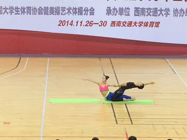 为扩大我校知名度,提高健美操水平,积极贯彻落实阳光体育运动,威廉希尔体育派出校健美操队和两名教师参加本次比赛。经过几个月的艰苦训练,各位选手在赛场上表现突出,获得瑜伽集体、瑜伽混双、瑜伽男单、健身舞教师组等4项冠军,瑜伽男单、瑜伽女单2项亚军,并取得民族舞蹈个人全能第八名和健身类团体总分第二名等多项好成绩!
