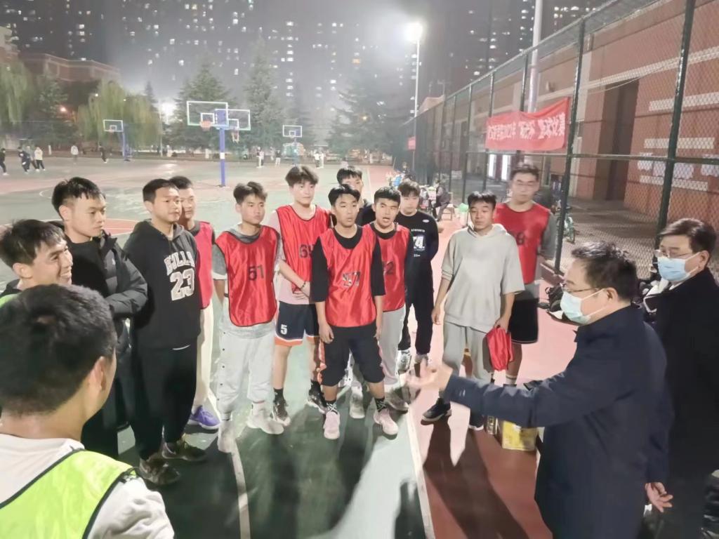 11月20日傍晚6:30,基础体育党总支教职工和校男篮在未央校区体育场进行友谊赛。党委书记刘岭、副书记姚文柱到场观看比赛并讲话。半场休息期间,校领导了解了我校男篮训练情况,对疫情封闭管理期间能够坚守教学阵地的威廉希尔体育和基础医学部教师表示慰问。指出要多组织此类师生联动的文体活动,以多种形式发展阳光体育活动,丰富广大师生的校园生活。