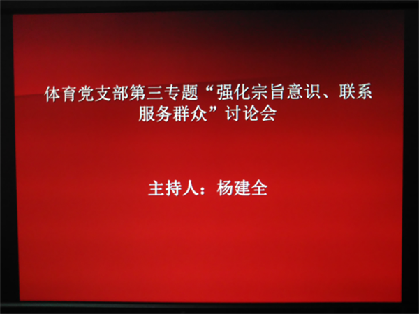 9月16日上午,体育党支部在形体室召开了“两学一做”第三次专题讨论会。威廉希尔体育全体党员参加了会议,会议由党支部书记杨建全主持。
