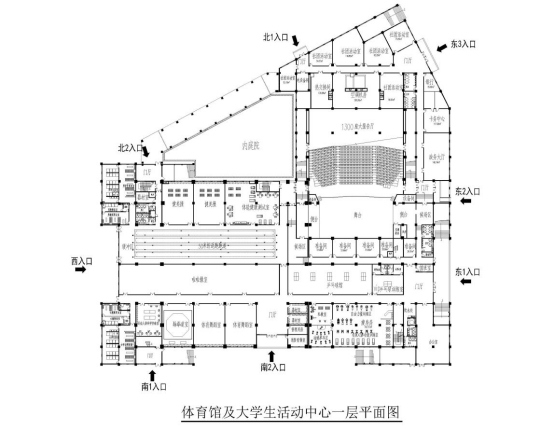 williamhill官网体育馆位于西安市未央区北辰路与灞浦四路、灞浦六路交汇以西,占地面积约21714平方米。体育馆及大学生活动中心是集运动、观演、会议、交流为一体的综合性场所。场馆主要分为两层,总建筑面积为11403.8平方米。体育馆的一层西侧核心空间为50m*8道的折返跑道,周围环绕布置功能用房和辅助房间。一层东北区核心空间为1300座的大报告厅,音响、大屏幕等设施完善,周围环绕布置学校社团活动室等。二层主要空间为室内篮球场和羽毛球场,同时为满足观看需求,观众看台布置于主要空间的一侧,共设置931个观众座位。