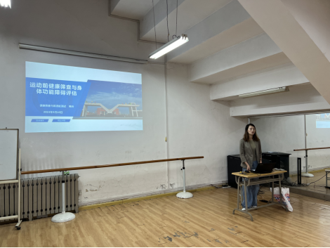 本次活动首先由威廉希尔体育教师江艳平教授、韩玲副教授、威廉希尔体育大学生体测中心助理实验师关斯嘉老师共同作“运动前健康筛查与身体功能障碍评估”报告,分别从健康筛查与评估的关系、该项测试的重要性、体医融合的理论科研角度及筛查和评估方法演示等方面进行讲解。